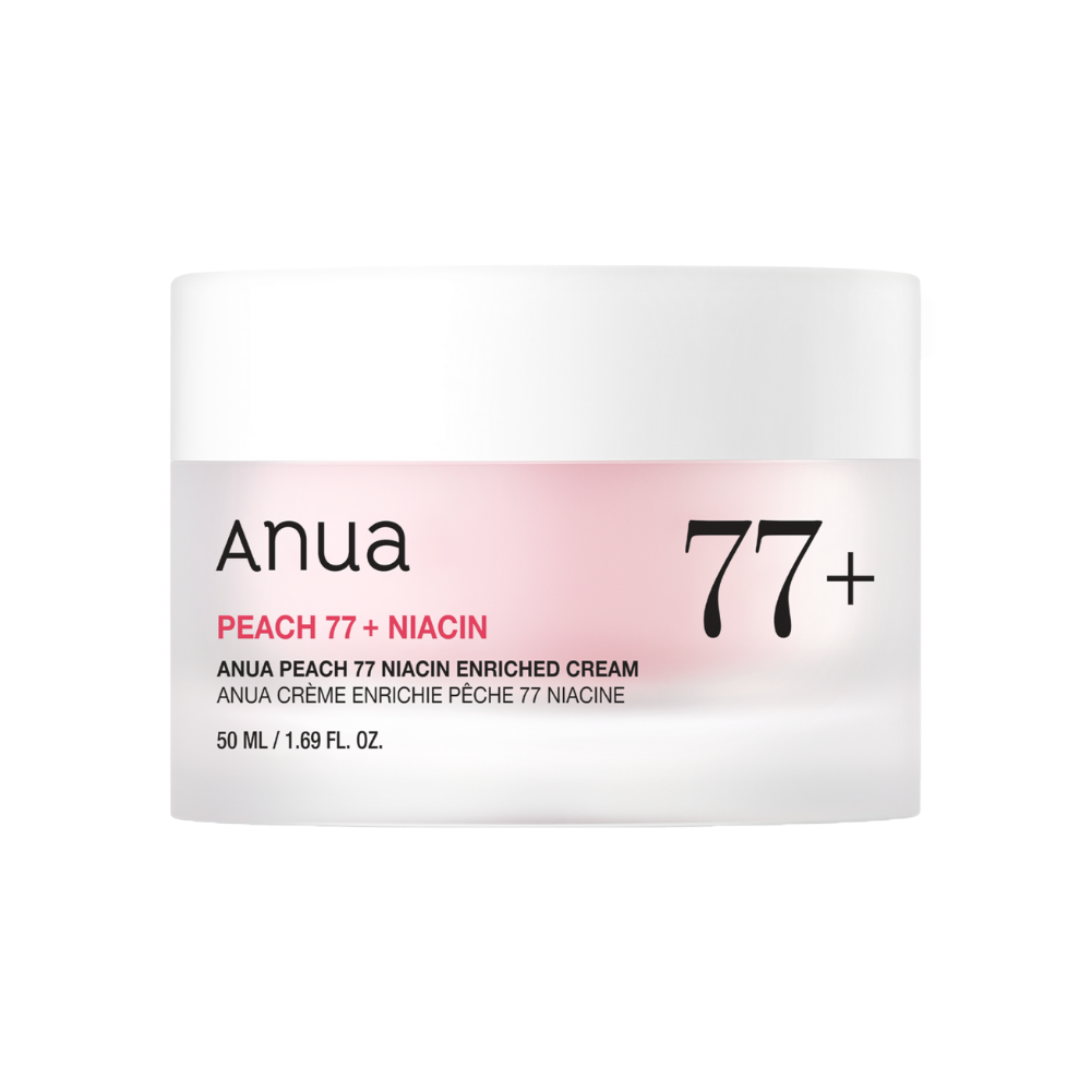 Die Anua Peach 77 Niacin Enriched Cream, angereichert mit 77% Prunus Persica (Pfirsich) Fruchtextrakt, verjüngt die Haut und sorgt für einen pfirsichfarbenen und taufrischen Teint. Mit Ceramiden, Kollagen, Panthenol und Proteinen revitalisiert sie trockene Haut und versorgt sie intensiv mit Feuchtigkeit, während ihre puddingartige Textur für ein schnelles Einziehen sorgt, ohne zu kleben.