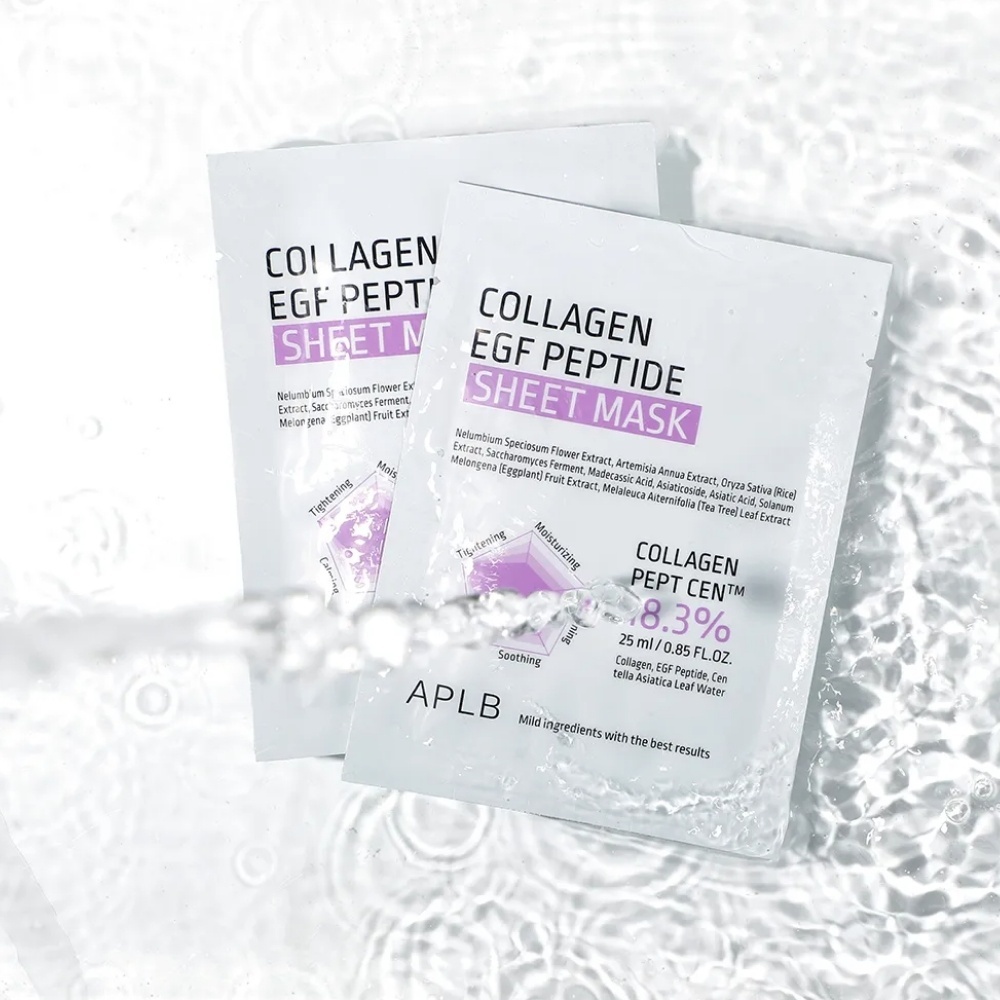 Revitalisiere und pflege fahle Haut mit der APLB Collagen EGF Peptide Sheet Mask – eine beruhigende, duftfreie Behandlung, die Feuchtigkeit spendet, beruhigt und die Hautregeneration unterstützt. Mehr erfahren