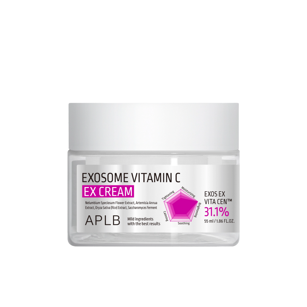 Nähre und bringe die Haut zum Strahlen mit APLB Exosome Vitamin C Ex Cream, angereichert mit 31,1 % EXOS EX VITA CEN™ – einem Premium-Komplex aus Exosomen, Vitamin C und Centella Asiatica Leaf Water. Mehr erfahren