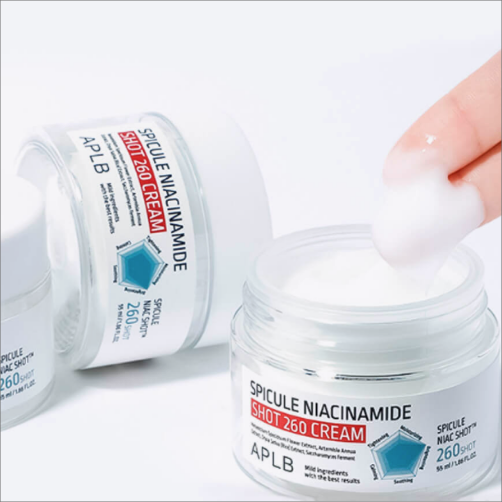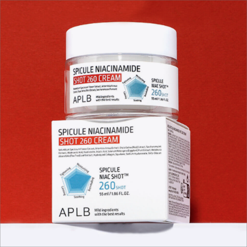 Die APLB Spicule Niacinamide Shot 260 Cream ist eine leichte, parfümfreie Gesichtscreme, die die Haut intensiv mit Feuchtigkeit versorgt, sie beruhigt und zum Strahlen bringt. Die innovative Formel enthält 260 mit Niacinamid versetzte Spicules, die die Aufnahme von Wirkstoffen verbessern und gleichzeitig die Spannkraft und Leuchtkraft der Haut erhöhen.