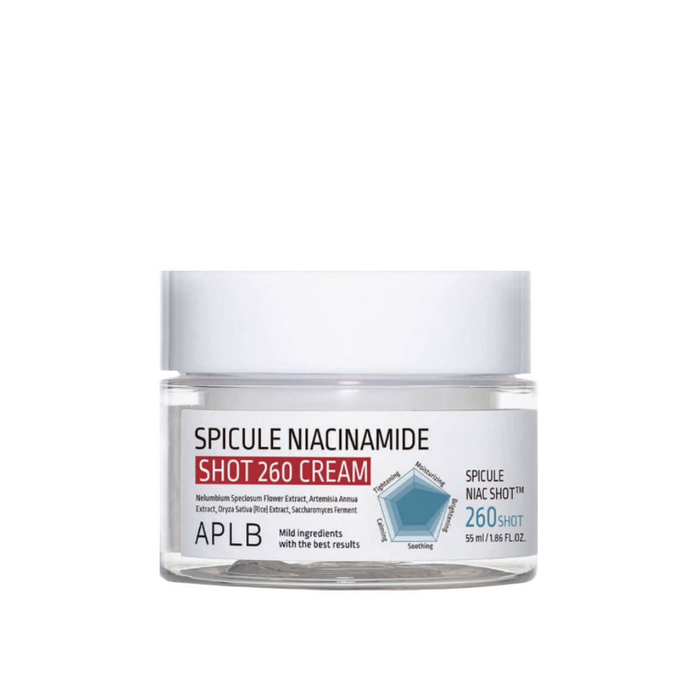 Die APLB Spicule Niacinamide Shot 260 Cream ist eine leichte, parfümfreie Gesichtscreme, die die Haut intensiv mit Feuchtigkeit versorgt, sie beruhigt und zum Strahlen bringt. Mehr erfahren