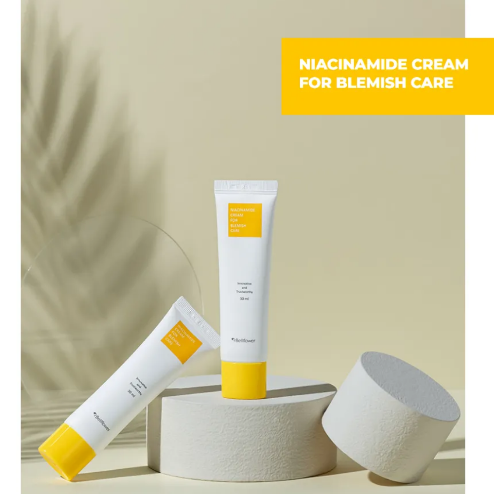 Die Bellflower Niacinamide Cream for Blemish Care ist eine leichte, nicht klebrige Creme, die gereizte, unreine oder müde Haut sichtbar beruhigt. Die Formel mit Niacinamide, Adenosin und Hyaluronsäure spendet Feuchtigkeit, hellt auf und stärkt die Hautbarriere für einen frischen, ausgeglichenen und ebenmäßigeren Teint.