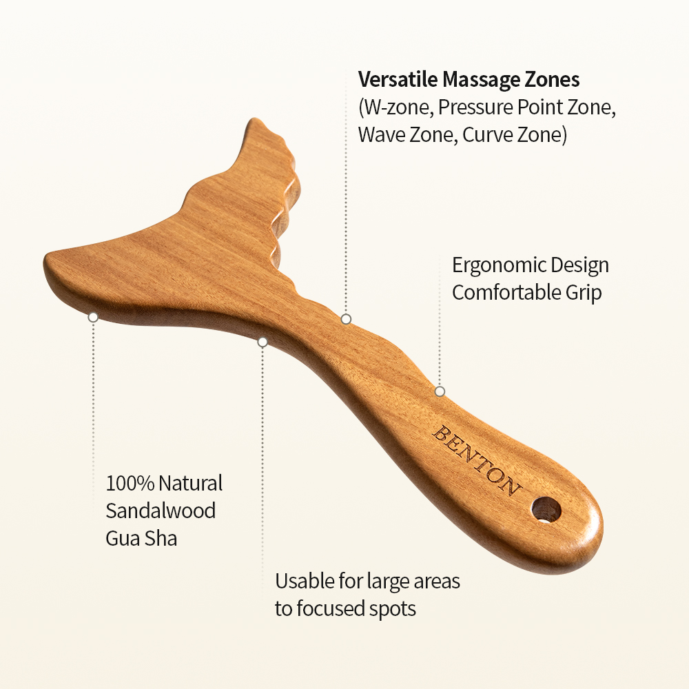 Entspanne Körper und Geist mit dem Benton Body Gua Sha Massager. Dieses Massagewerkzeug aus 100 % Sandelholz lindert Muskelverspannungen, fördert die Durchblutung und sorgt für pure Entspannung. Das leichte, handliche Design ist ideal für Arme, Beine, Bauch, Nacken, Schultern und Dekolleté. Perfekt für eine kleine Auszeit zu Hause.