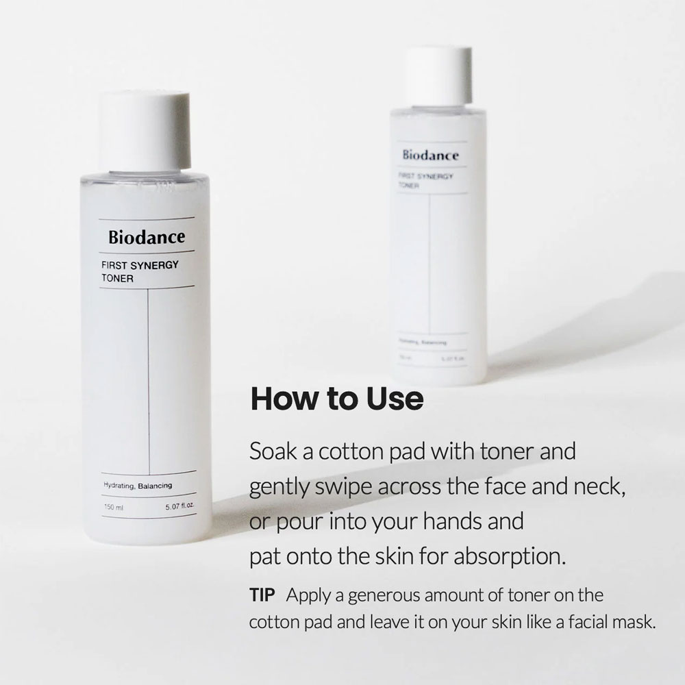 Der Biodance First Synergy Toner ist ein hochkonzentrierter Toner mit 96 % feuchtigkeitsspendenden Inhaltsstoffen. Die reichhaltige, serumähnliche Textur spendet intensive Feuchtigkeit schon bei kleiner Menge – ideal zur tiefenwirksamen Pflege der Haut.