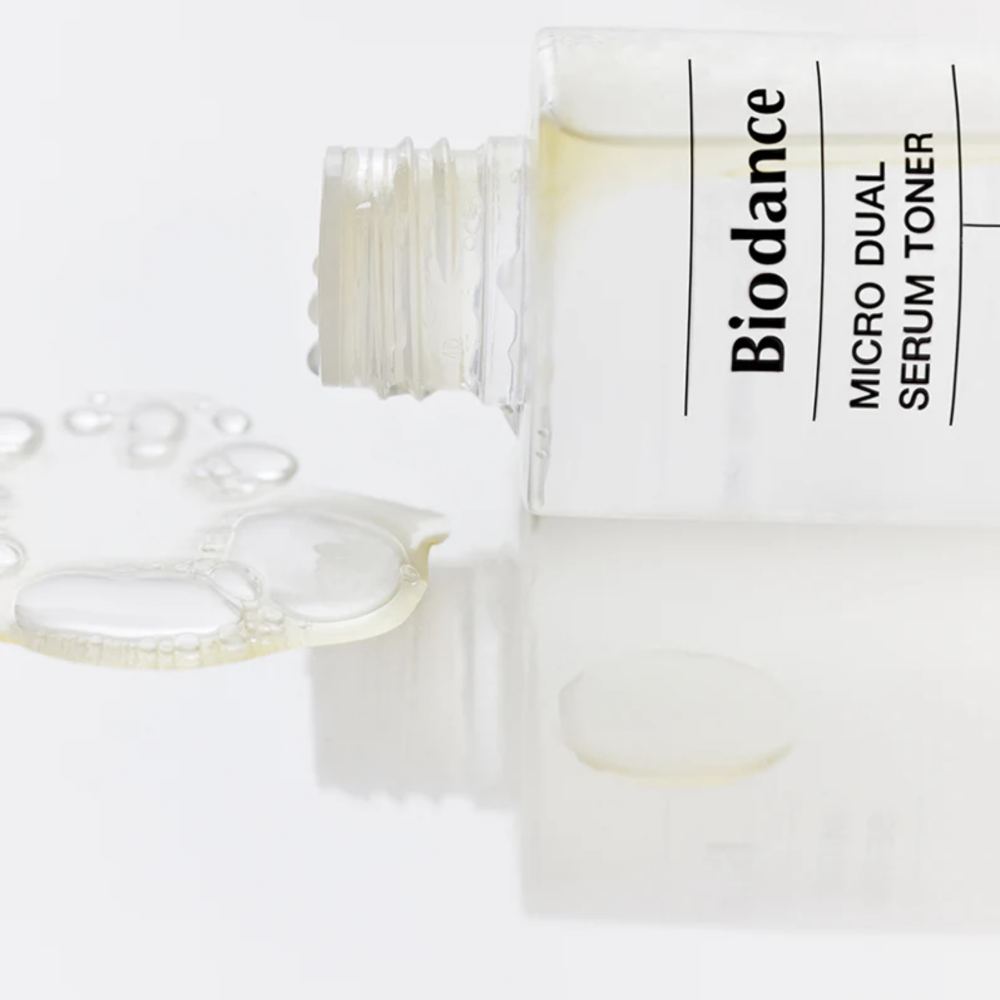 Entdecke den Biodance Micro Dual Serum Toner: 2-in-1 Toner mit Niacinamid und Hyaluronsäure für eine hydratisierte, glatte und strahlende Haut. Mehr erfahren