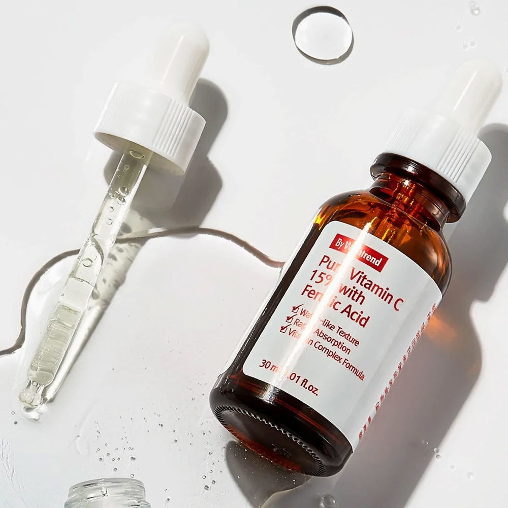 By Wishtrend Pure Vitamin C 15% with Ferulic Acid enthält 15% reines Vitamin C, das bei der antioxidativen Pflege, der Hautaufhellung und der Akneprävention hilft, das Kollagen stärkt und die Haut vor UV-Strahlen schützt. Da es Ferulasäure enthält, maximiert es die antioxidative und antibakterielle Wirkung von Vitamin C. Empfohlen für fettige Haut und Mischhaut sowie für Vitamin-C-Einsteiger.