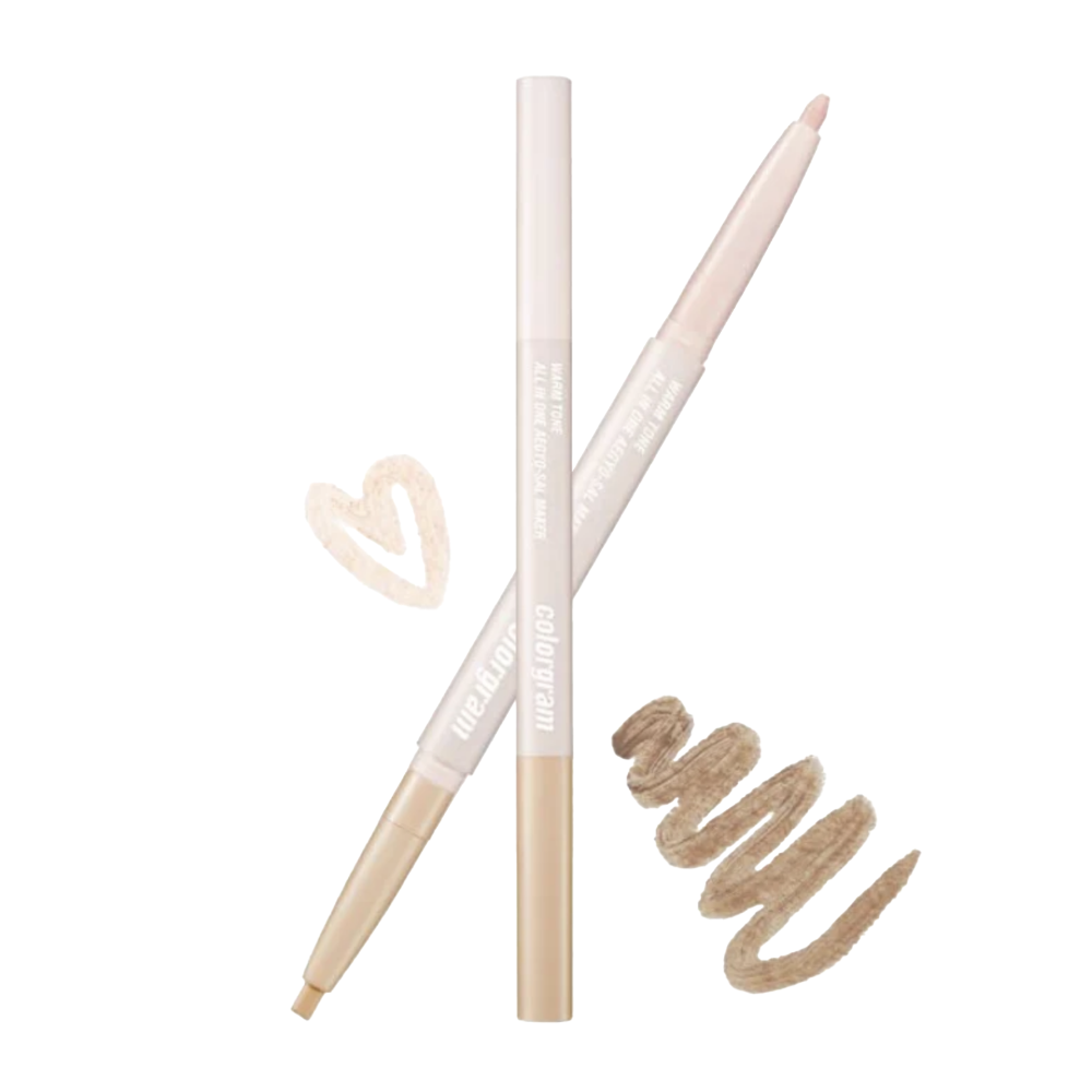 Der Colorgram All In One Aegyo-Sal Maker ist ein doppelseitiger Liner, mit dem sich realistisches Aegyo-Sal durch Highlight und Schattierung erzeugen lässt. Die flache Seite sorgt für gleichmäßige Abdeckung und Schatten, während die Spitze eine präzise Anwendung ermöglicht. Erhältlich in verschiedenen Kombinationen aus Concealer, Shimmer und Schattierungen, um den gewünschten Look zu kreieren. Die weiche, cremige Textur lässt sich mühelos verblenden, ohne zu verklumpen.
