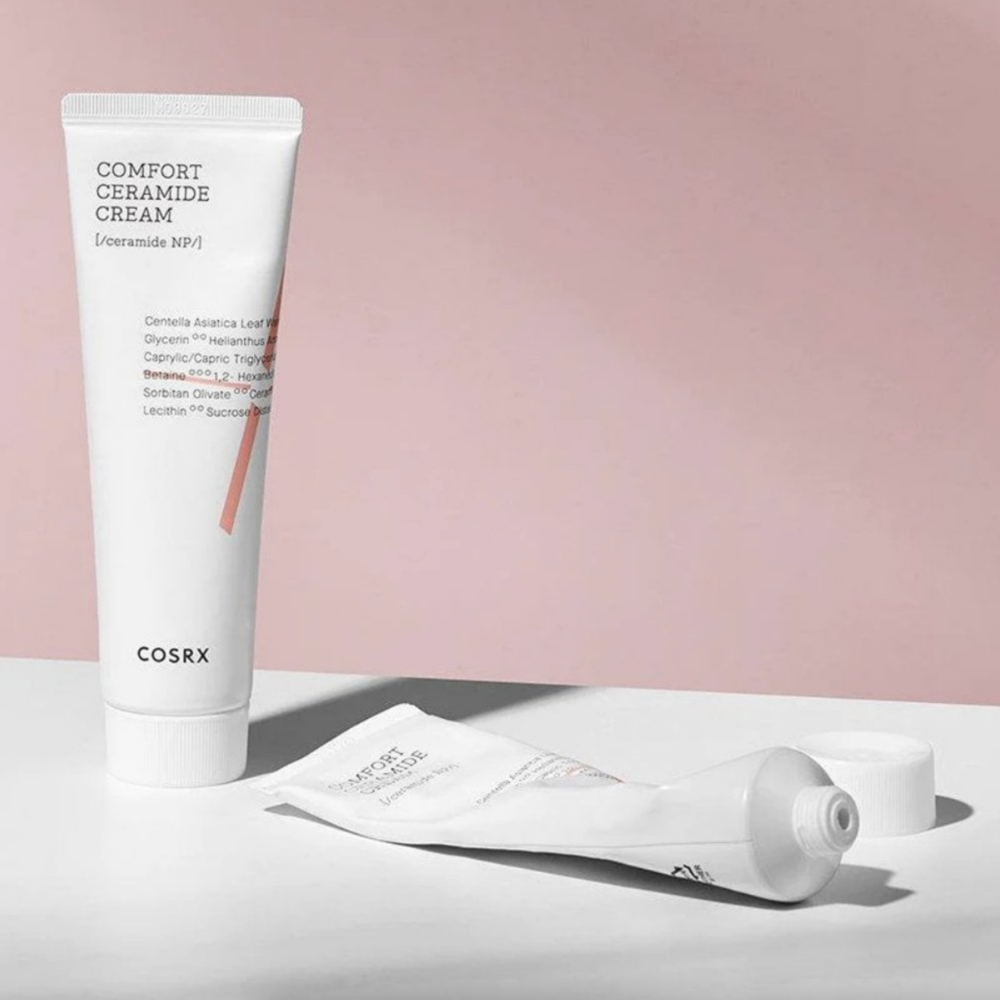 COSRX Balancium Comfort Ceramide Cream ist eine leichte Creme, die Ceramide und 3 Formen von Centella Asiatica enthält, die Irritationen heilen und lindern. Ceramide haben die Fähigkeit, die Hautbarriere zu stärken und den epidermalen Wasserverlust zu verhindern, wodurch Reizungen reduziert werden.