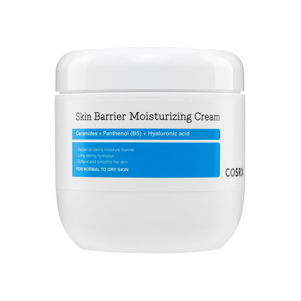 Die COSRX Skin Barrier Moisturizing Cream spendet intensive, langanhaltende Feuchtigkeit für bis zu 100 Stunden und stärkt die Hautbarriere für ein gesundes, angenehmes Hautgefühl. Die reichhaltige, cremige Textur schmilzt sofort in die Haut und hinterlässt ein weiches, nicht fettiges Finish. Diese Creme wurde speziell entwickelt, um trockene und empfindliche Haut zu regenerieren und vor Feuchtigkeitsverlust zu schützen. Ideal für den ganzen Körper, von Kopf bis Fuß, besonders nach dem Duschen oder wenn sich die Haut trocken und gespannt anfühlt. Das Ergebnis ist eine glatte, geschmeidige Haut, die langanhaltend mit Feuchtigkeit versorgt bleibt.