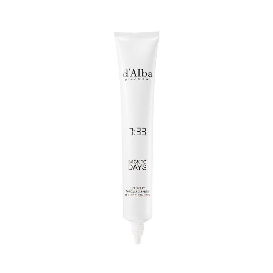 Derd'Alba 7:33 Back To Days Clean Balm ist ein Reinigungsbalsam auf Ölbasis, der hartnäckiges Make-up sanft entfernt und die Poren von Ablagerungen befreit. Der Balsam mit Schwarzreis-Extrakt, 23% Olivenöl und Macadamiaöl schmilzt beim Auftragen und löst Make-up und Unreinheiten, während er die Haut mit Antioxidantien pflegt und mit Energie versorgt. Der einzigartig geformte Applikator macht es einfach, das Produkt nach dem Öffnen der Packung sauber und hygienisch zu halten.