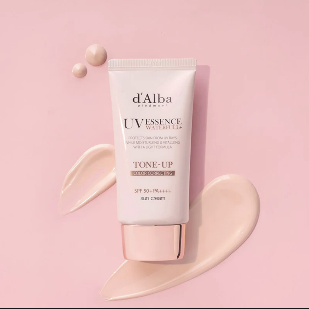 Entdecke die d’Alba Waterfull Tone-Up Sun Cream (Pink), eine vegane Sonnencreme SPF50+ PA++++, die schützt, hydratisiert und die Haut mit einem natürlichen Rosé-Glow zum Strahlen bringt. Die leichte Formel mit Pfirsichextrakt, Centella Asiatica und Niacinamid beruhigt Irritationen, gleicht den Teint aus und verleiht Frische und Ausstrahlung – ganz ohne Foundation.