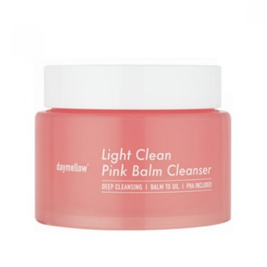 DerDaymellow Light Clean Pink Balm Cleanser schmilzt bei Kontakt mit der Haut zu Öl und entfernt in einem Schritt Make-up, Talg und Schmutz, ohne zu tropfen. Dank Hagebuttenöl und Damaszener Rosenwasser hinterlässt er die Haut prall, beruhigt, erfrischt und duftet angenehm. Avocadoöl und Kamelienöl in der Formel beruhigen und nähren die Haut, während Papaya-Extrakt und PHA Mitesser und abgestorbene Hautzellen sanft auflösen.