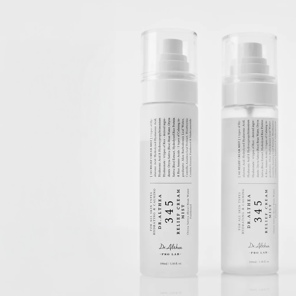 Dr. Althea 345 Relief Cream Mist ist ein feuchtigkeitsspendender Gesichtsspray, der die Haut beruhigt, die Hautbarriere stärkt und langanhaltende Feuchtigkeit spendet. Reisextrakte, Hyaluronsäure und Centella Asiatica unterstützen die Hautbarriere und helfen trockene oder gereizte Haut zu beruhigen.