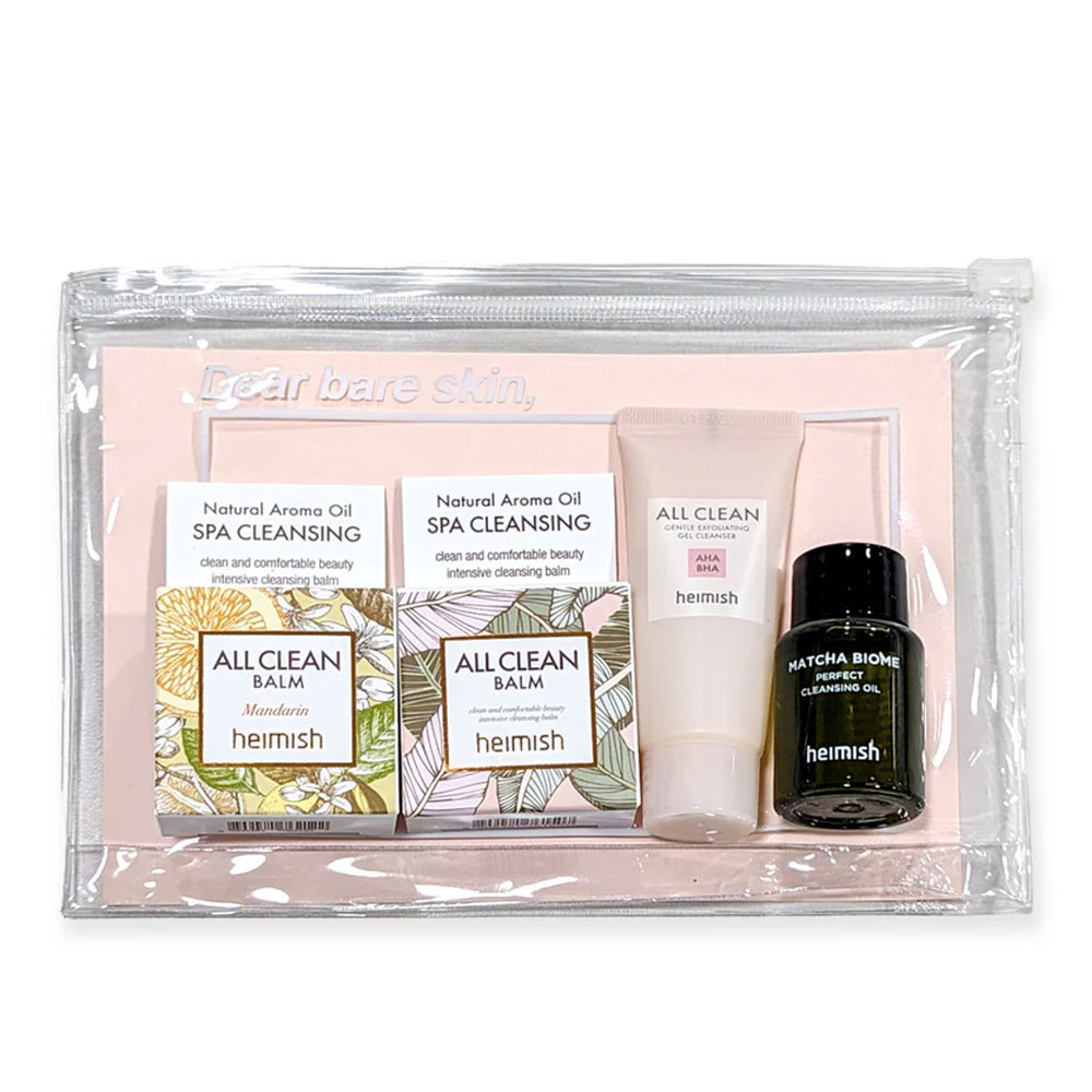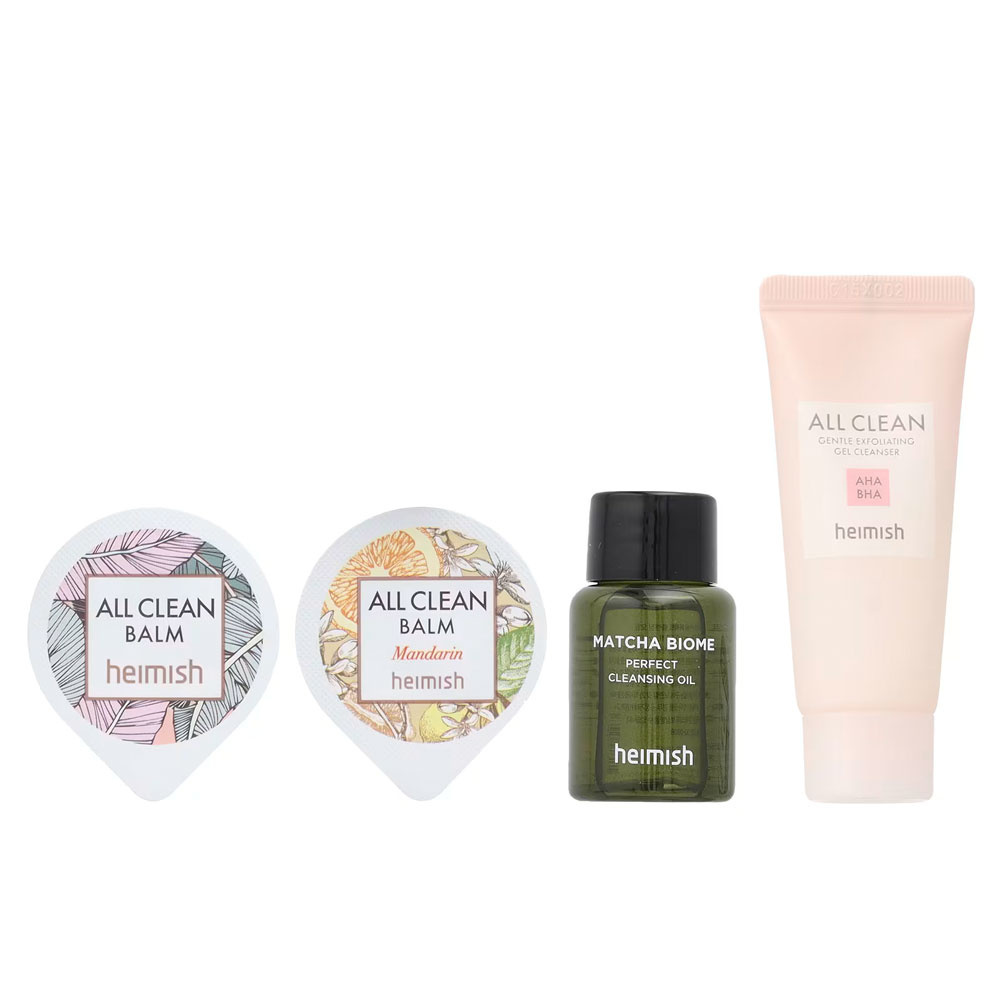 Heimish Cleansing Set ist das ultimative, reisefreundliche Hautpflege-Set mit vier Essentials, um die Haut überall frisch, klar und hydratisiert zu halten. Dieses Mini-Set enthält einen sanften, täglichen Reiniger mit niedrigem pH-Wert, einen klärenden White Clay Foam, einen sorbetartigen Cleansing Balm und eine beruhigende Black Tea Wash-off Maske—perfekt für eine vollständige Reinigungs- und Pflegeroutine unterwegs.