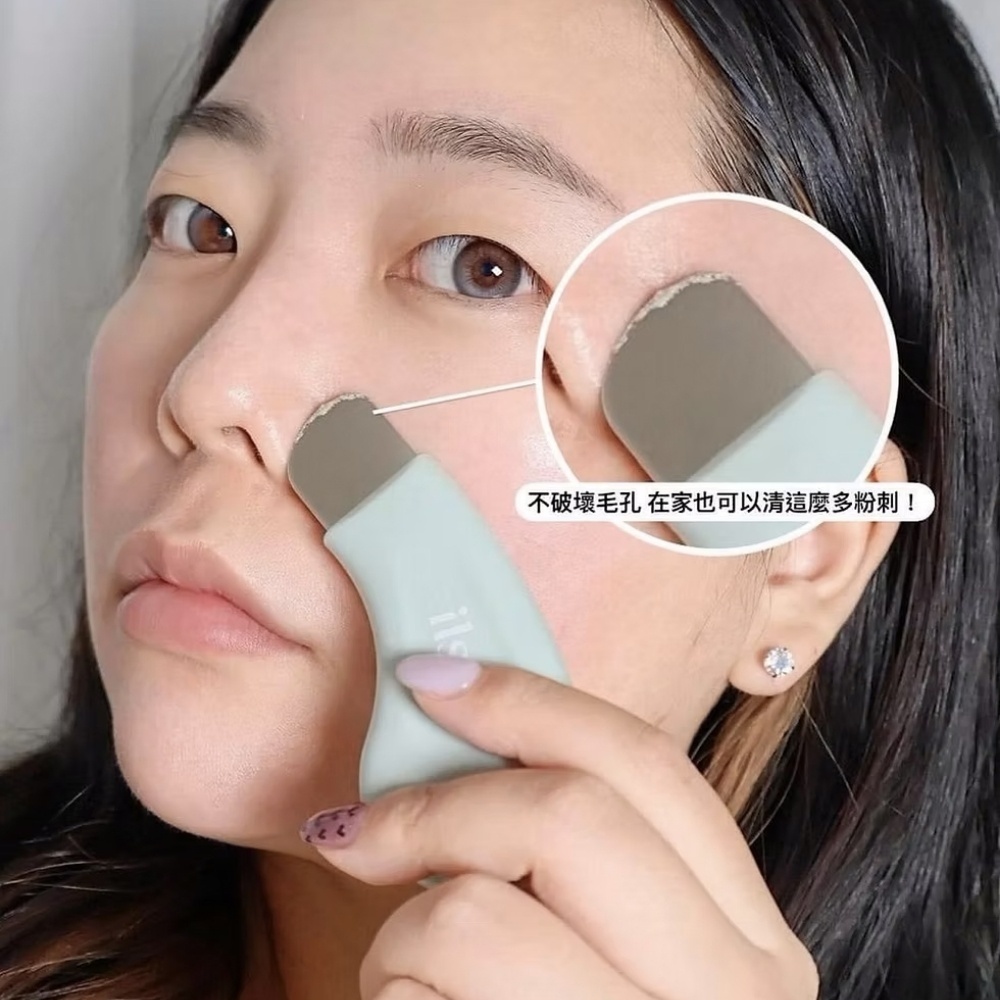 - Mit dem Tool sanft über die Haut schaben, um Mitesser und Talg zu entfernen.
