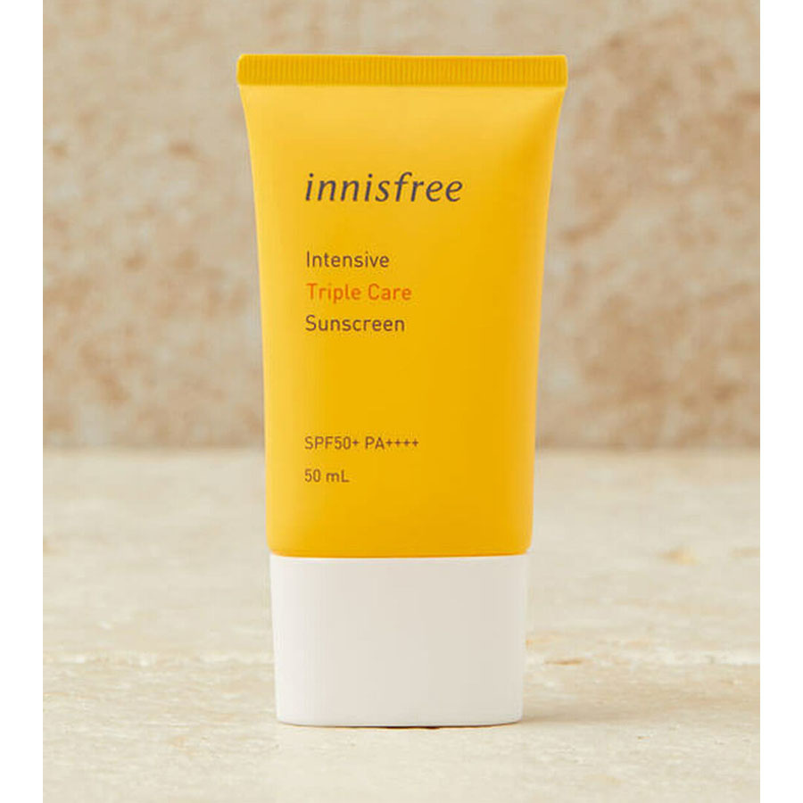 Der Innisfree Intensive Triple Shield Sunscreen SPF 50+ PA+++ ist ein mineralischer Sonnenschutz, der sowohl vor UVA- als auch vor UVB-Strahlen schützt. Die Filter sind in Nanoform formuliert (die Teilchengröße ist kleiner), so dass die Wahrscheinlichkeit, einen Weißstich zu bekommen, geringer ist.