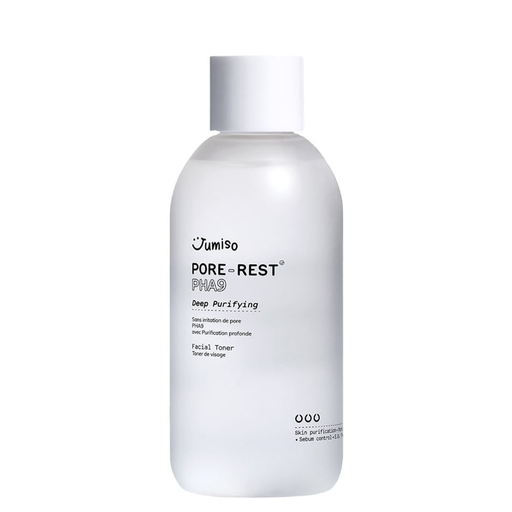 Das Jumiso Pore-Rest PHA 9 Deep Purifying Facial Toner ist ein Peeling, das die Haut klärt und ihr ein ebenmäßiges Aussehen verleiht. Es enthält 9 % PHA, um die Poren zu peelen und die überschüssige Talgproduktion zu kontrollieren, ohne die Haut zu reizen, was es für empfindliche Hauttypen geeignet macht. Sie ist parfümfrei und eignet sich für trockene und fettige Haut.