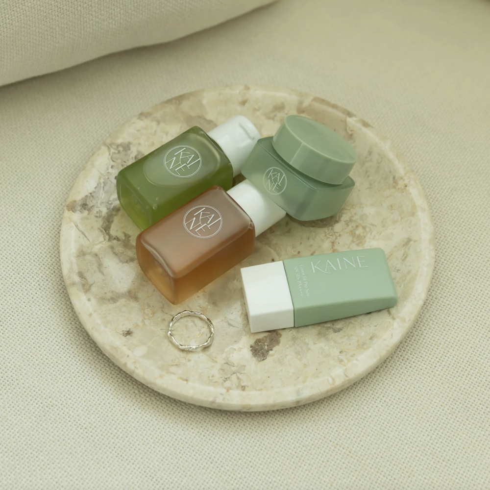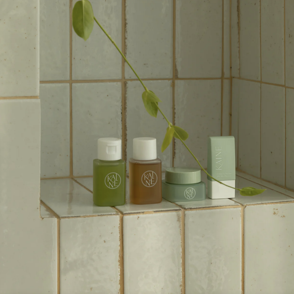 Das Kaine Travel Kit ist kompakt, praktisch und bezaubernd – es enthält vier Bestseller-Produkte der Marke in Reisegröße. Perfekt für unterwegs, im Fitnessstudio oder für Wochenendtrips, verpackt in einer wiederverwendbaren 100% Nylon-Tasche, die ebenso praktisch wie hübsch ist. Enthalten sind der erfrischende Rosemary Relief Gel Cleanser, der ausgleichende Kombu Ampoule Toner, die feuchtigkeitsspendende Green Calm Aqua Cream und der schützende Green Fit Pro Sun – eine komplette Hautpflegeroutine für unterwegs.