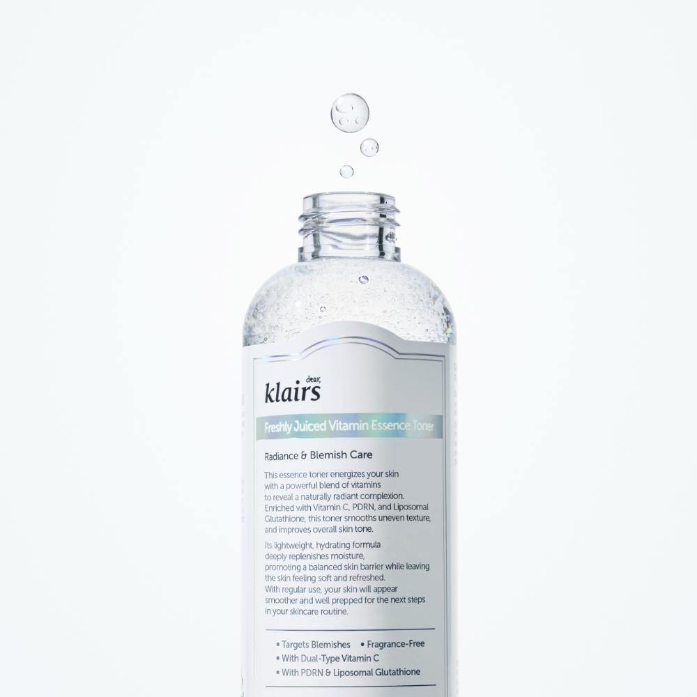 Dear Klairs Freshly Juiced Vitamin Essence Toner hellt die Haut mit Vitamin C, Glutathion und PHA auf. Reduziert Flecken und spendet Feuchtigkeit. Mehr erfahren