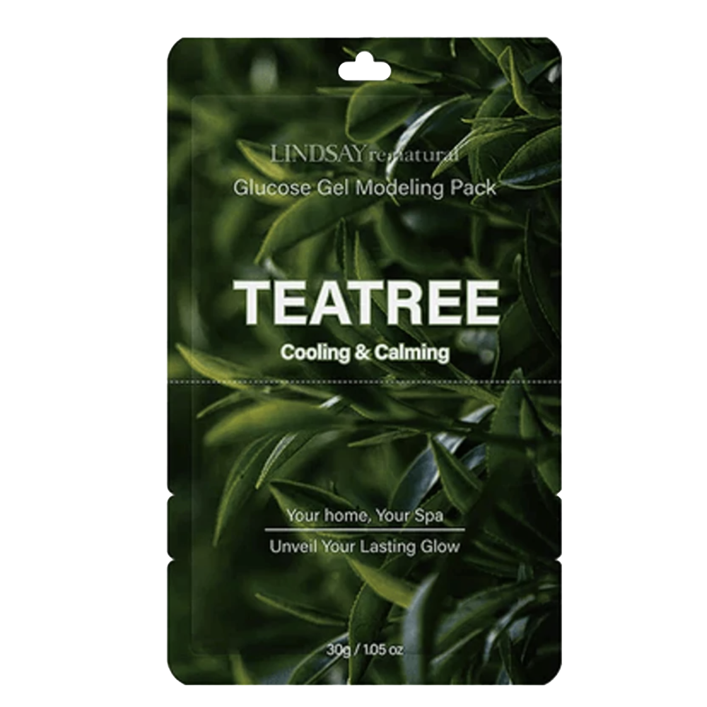 Lindsay Re:natural Glucose Gel Modeling Pack Teatree ist eine kühlende und beruhigende Modelliermaske mit über 50 % Glukose und Teebaumextrakt. Beim Mischen mit Wasser nimmt die Formel Wärme auf und sorgt 20 Minuten lang für ein intensives Frischegefühl. Glukose wirkt als natürlicher Feuchtigkeitsspender, der Hydratation speichert, während Teebaum die Haut beruhigt und ausgleicht. Die Maske legt sich wie ein Vakuum auf die Haut, verstärkt die Feuchtigkeitsversorgung und verfeinert die Poren.
