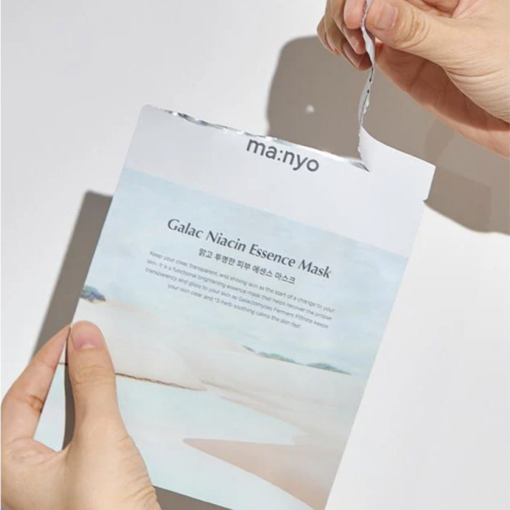 Die Manyo Galac Niacin Essence Mask ist eine 100 % vegane Bambus-Tuchmaske, die die Haut intensiv mit Feuchtigkeit versorgt, aufhellt und revitalisiert. Angereichert mit Galactomyces-Fermentfiltrat und Niacinamid sorgt sie für einen gleichmäßigen Teint und natürliche Ausstrahlung. Der Dreifach-Hyaluronsäure-Komplex spendet Feuchtigkeit, während die leichte Essence schnell einzieht. Ideal für müde, trockene oder fahle Haut.