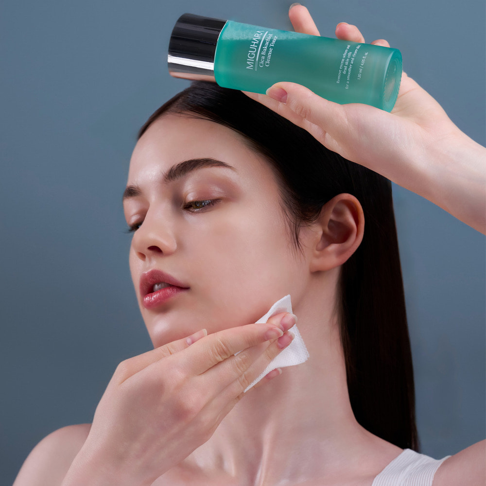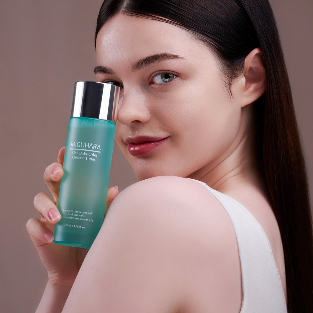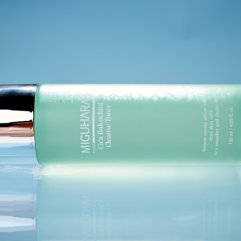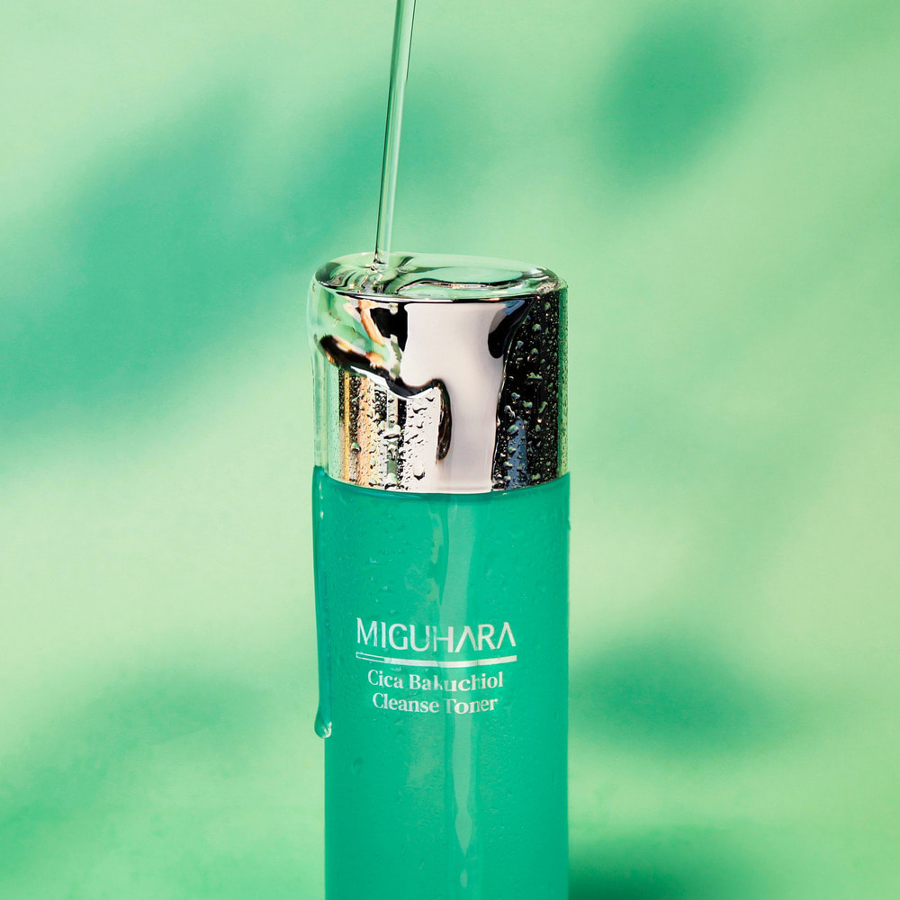 Das Miguhara Cica Bakuchiol Cleanse Toner enthält 75 % Centella Asiatica-Extrakt und Bakuchiol, das entwickelt wurde, um die Feuchtigkeitsbarriere der Haut zu stärken und Empfindlichkeit zu beruhigen. Mit seinem patentierten Anti Sebum P-Wirkstoff entfernt es überschüssigen Talg und verfeinert die Poren.