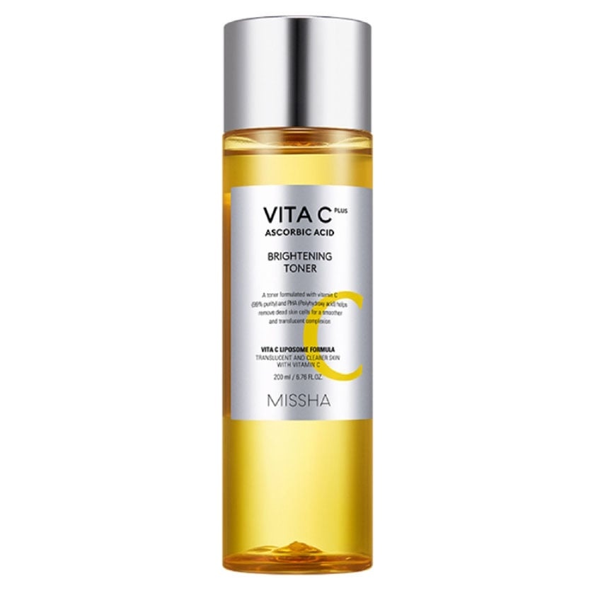 Missha Vita C Plus Brightening Toner ist ein Gesichtswasser mit Vitamin C (99% Reinheit) und PHA (Polyhydroxysäure), das abgestorbene Hautzellen entfernt und für einen glatteren und strahlenderen Teint sorgt. Er hat einen medizinischen Test absolviert, der Unreinheiten verbessert und sehr effektiv bei der Entfernung von Unreinheiten ist.