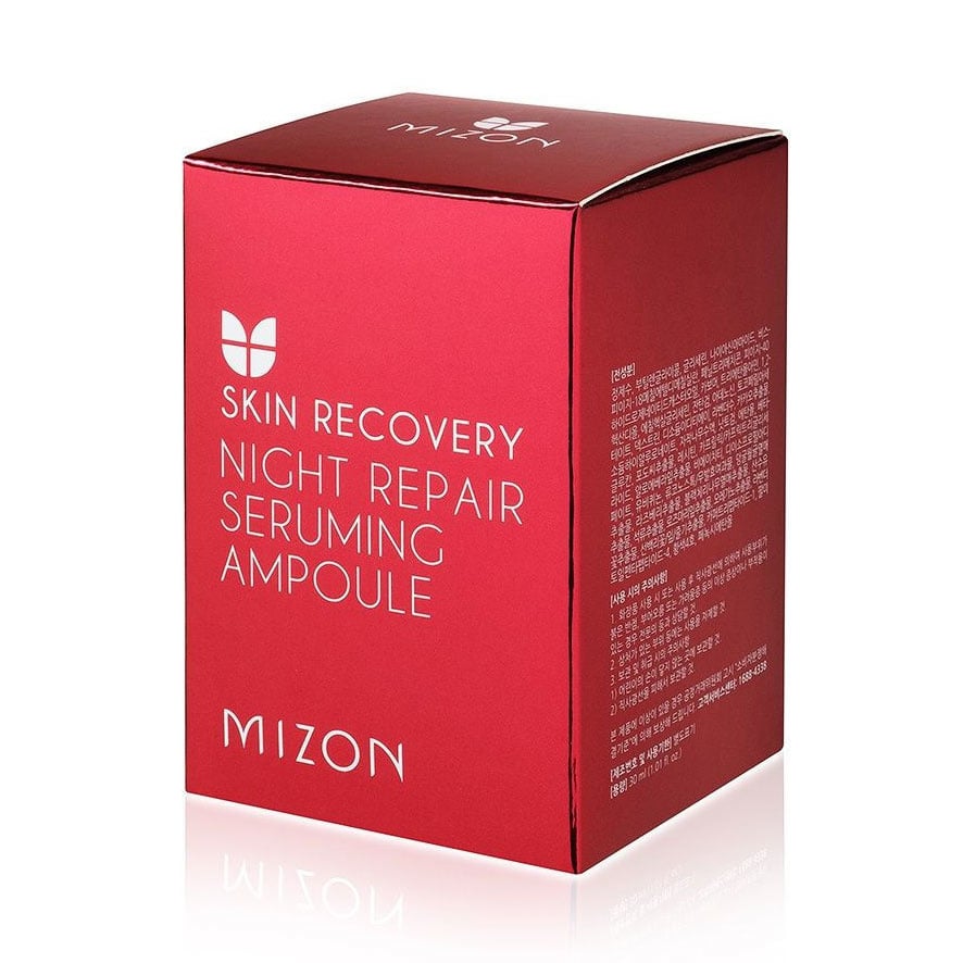 DieMizon Skin Recovery Night Repair Seruming Ampulle ist eine hoch angereicherte Ampulle, die nachts verwendet wird, um die Haut zu revitalisieren und aufzuhellen. Sie pflegt nicht nur aktuelle Falten, sondern beugt auch neuen vor, um die vorzeitige Hautalterung zu verzögern. Die Wirkstoffe wirken während der Nacht und sorgen für eine ausgeruhte, glatte und gestärkte Haut. Sie enthält Antioxidantien und nährstoffreichen Kakaoextrakt, der die Haut glatt und seidig macht, Pflanzenextrakte wie Lavendel und Rosmarin, die die Haut klären und stärken, sowie Niacinamid, das die Haut stärkt und aufhellend wirkt.