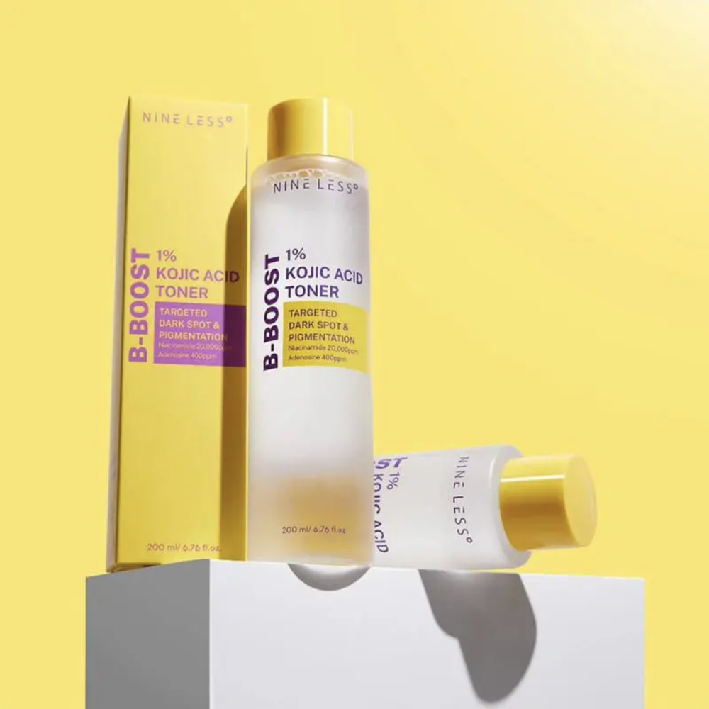 Der Nine Less B Boost Kojic Acid Toner ist ein wirkungsvoller, aber sanfter Toner, der dunkle Flecken und Hyperpigmentierung reduziert und für einen klareren, ebenmäßigeren Teint sorgt. Mit Kojinsäure und Niacinamid hellt er die Haut auf und stärkt die Hautbarriere, während Adenosin beruhigt und revitalisiert. Geeignet für alle Hauttypen, auch für empfindliche und zu Akne neigende Haut.