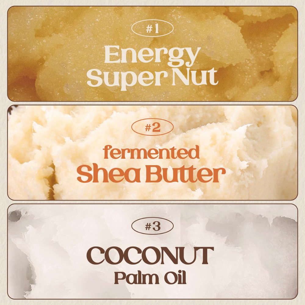 Water, Glycerin, Cocos Nucifera (Coconut) Oil, Helianthus Annuus (Sunflower) Seed Oil, Prunus Amygdalus Dulcis (Sweet Almond) Oil, Macadamia Ternifolia Seed Oil, Polyglyceryl-3 Distearate, Glyceryl Stearate Citrate, Palmitic Acid, Stearic Acid, Cetearyl Alcohol, 1,2-Hexanediol, Sodium Acrylate/Sodium Acryloyldimethyl Taurate Copolymer, Polyisobutene, Caprylyl/Capryl Glucoside, Sorbitan Oleate, Vinyl Dimethicone, Glyceryl Stearate, Carbomer, Tromethamine, Xanthan Gum, Fragrance, Ethylhexylglycerin, Tocopherol, Candida Bombicola/Glucose/Methyl Rapeseedate Ferment, Butyrospermum Parkii (Shea) Butter, Sodium Phytate, Aleurites Moluccanus Seed Oil, Shorea Stenoptera Seed Butter.