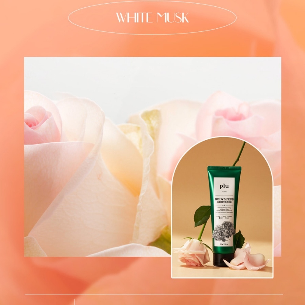 Verwöhne deine Haut mit dem Plu Body Scrub White Musk – einem luxuriösen 3-in-1-Peeling, das Reinigung, Feuchtigkeit und Leuchtkraft vereint. Mehr erfahren