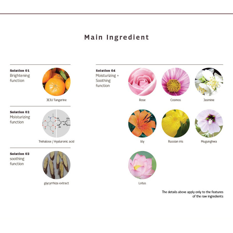 Wasser, Alcohol Denat, Buytlene Glycol, PEG/PPG-17/6 Copolymer, Glycerin, 1,2-Hexandiol, Betain, Caprylyl Glycol, Citrus Unshiu Peel Extract, Sodium Hyaluronate, Phenoxyethanol, Ethylhexylglycerin, Biosaccharde Gum-1, Trehalose, Arginin, Carbomer, Sorbitol, Fragrance, Disodium EDTA, Lilium Candidum Flower Extract, Jasminum Officinale (Jasminum) Flower Extract, Rosa Centifolia Flower Extract, Iris Ensata Extract, Hibiscus Rosa-Sinensis Flower/Leaf Extract, Nelumbo Nucifera Flower Extract, Rosa Centifolia Flower Water, PEG-60 Hydrogenated Castor Oil, CI 19140, CI 14700
