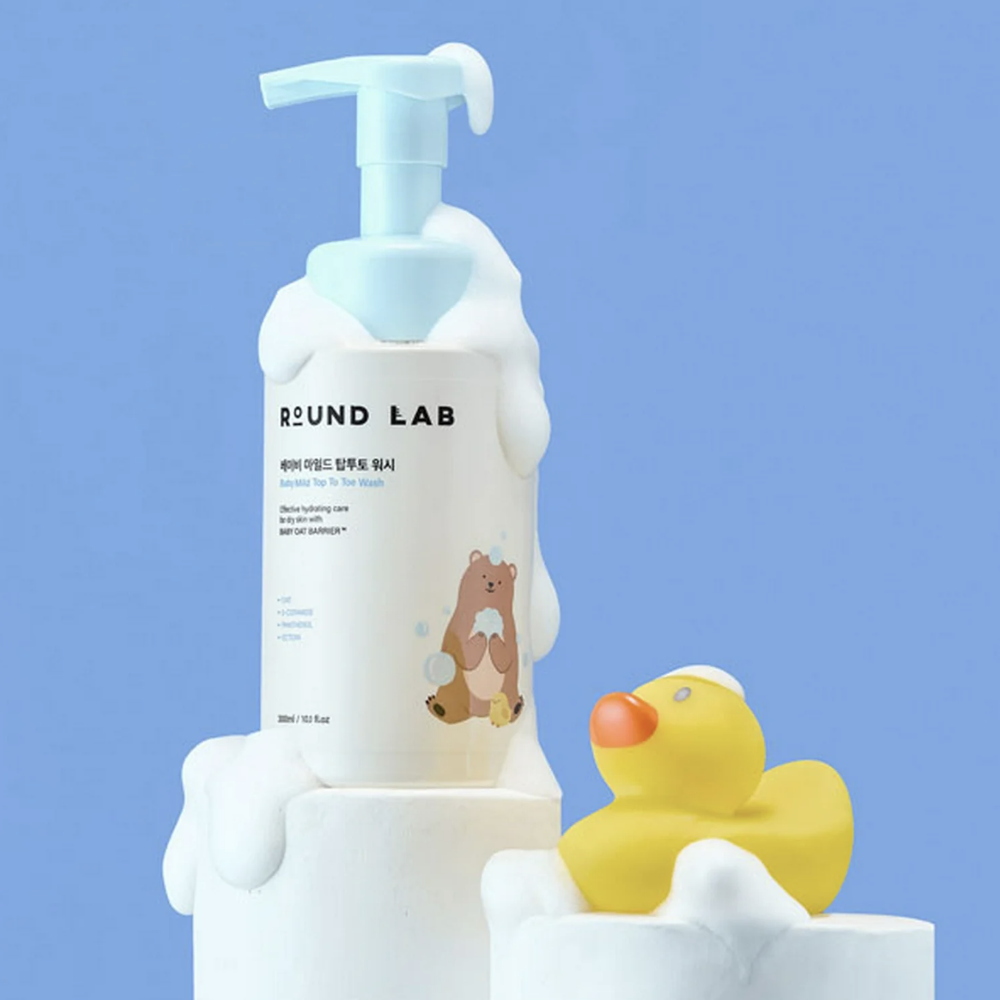 Das Round Lab Baby Mild Top to Toe Wash ist ein sanfter All-in-One-Reiniger, der speziell für die empfindliche Babyhaut entwickelt wurde. Mit Baby Oat Barrier™ formuliert, reinigt es effektiv und spendet gleichzeitig tiefe Feuchtigkeit und Schutz für trockene oder empfindliche Haut.
