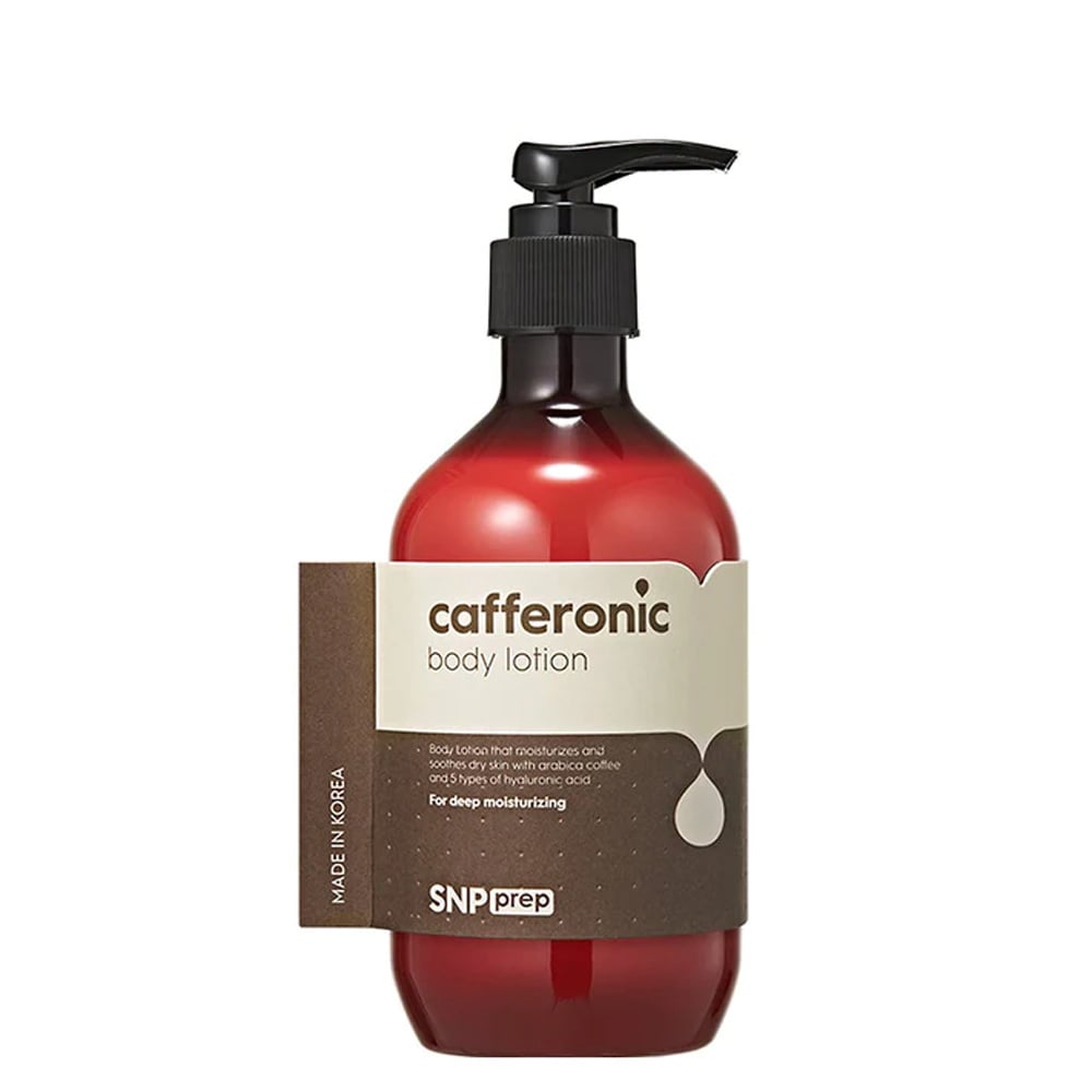 Die SNP Prep Cafferonic Bodylotion versorgt die Haut mit sofortiger Feuchtigkeit und hinterlässt ein seidig-weiches Hautgefühl dank der 5 Arten von Hyaluronsäure und Arabica-Kaffee in der Formel. Die Lotion hat eine leichte Textur und verstopft die Poren nicht. Koffein, Sheabutter und Ceramide machen die Haut weich, stärken die Hautbarriere und beugen Schuppen und Rissen vor.