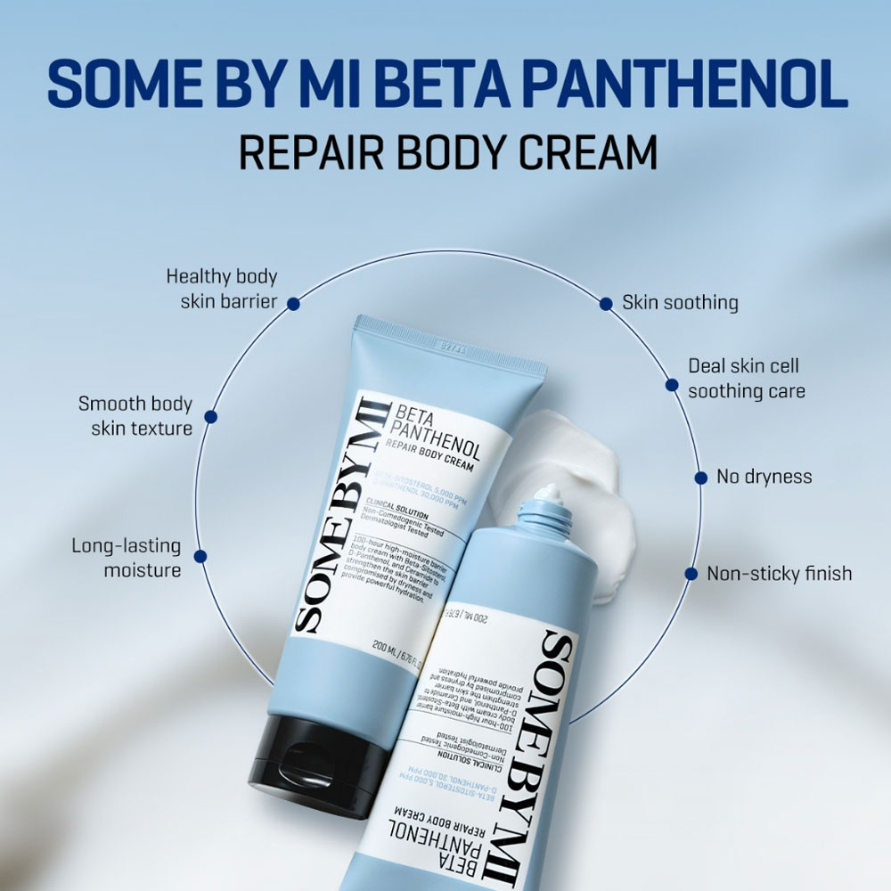 Some By Mi Beta Panthenol Repair Body Cream ist eine pflegende Körpercreme, die sorgfältig mit Beta-Panthenol und Ceramid formuliert wurde, um die geschädigte Hautbarriere zu reparieren und Trockenheit zu lindern. Angereichert mit Ectoin und Polyglutaminsäure spendet sie tiefenwirksame Feuchtigkeit und reduziert Schuppenbildung, die durch trockene Haut verursacht wird.