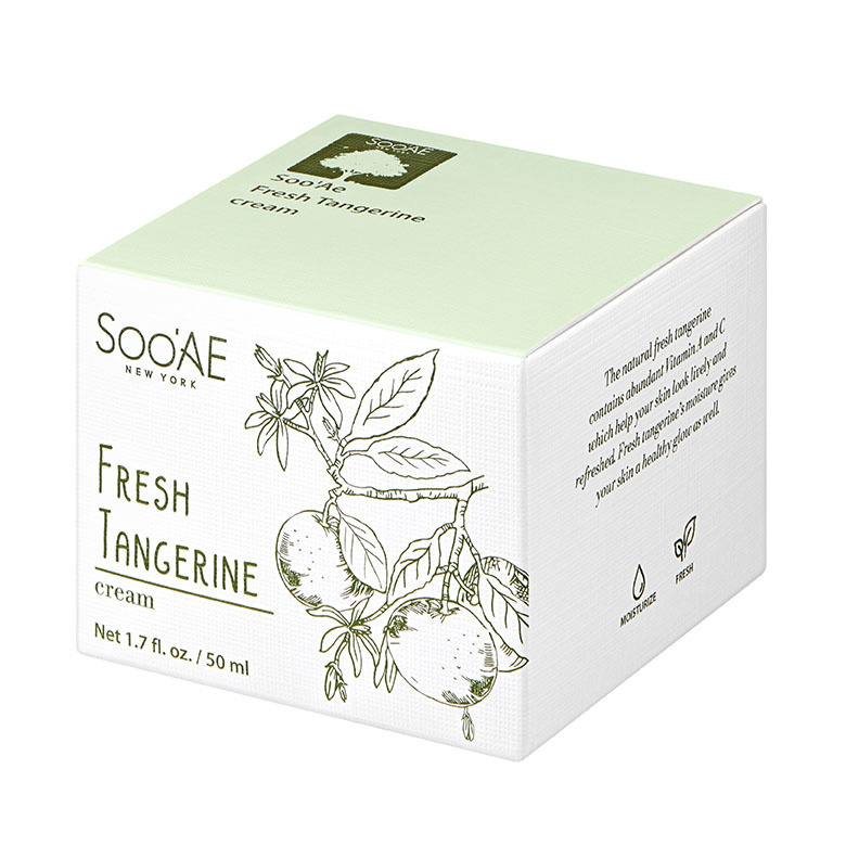DieSoo'AE Fresh Tangerine Cream ist eine leichte, nicht klebende Gelcreme, die aus jungen Mandarinen hergestellt wird. Daher enthält die Creme eine große Menge an Vitamin C und ist reich an Vitamin A. Grüntee-Extrakt gibt der Haut einen Schub an Antioxidantien und beruhigt sie ebenso wie Panthenol (Provitamin B5). Insgesamt ist diese Creme für Menschen mit fettiger Haut (oder Mischhaut) geeignet, die einen starken Antioxidantienschub suchen, der sich auf der Haut nicht schwer oder fettig anfühlt.