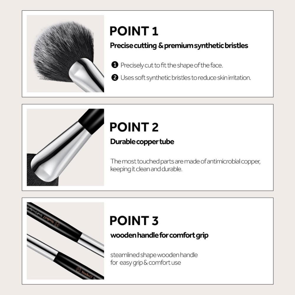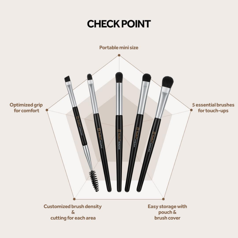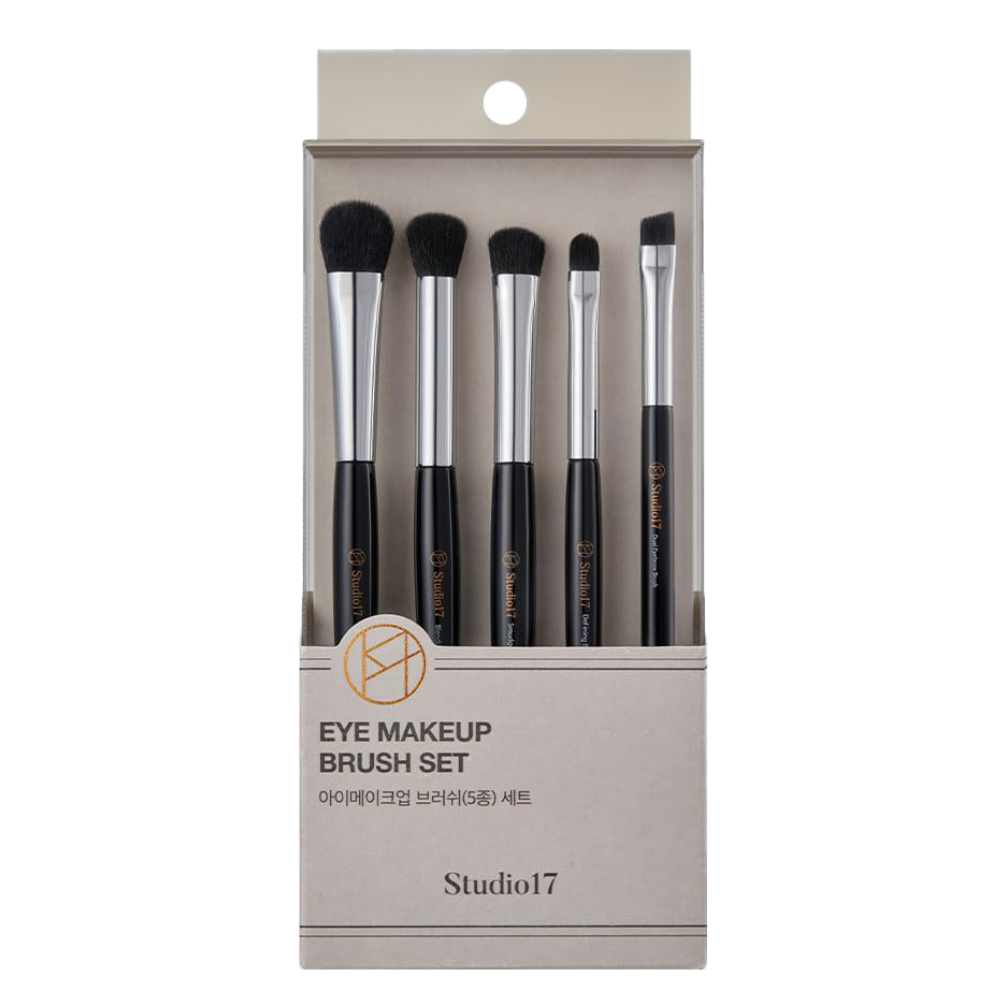 Das STUDIO 17 Eye Makeup Brush Set ist ein professionelles Pinselset, das von koreanischen Make-up-Artists für perfekt definierte Augenlooks entwickelt wurde. Dieses Set mit fünf unverzichtbaren Pinseln ermöglicht müheloses Verblenden, Schattieren und Definieren — von natürlich bis dramatisch.