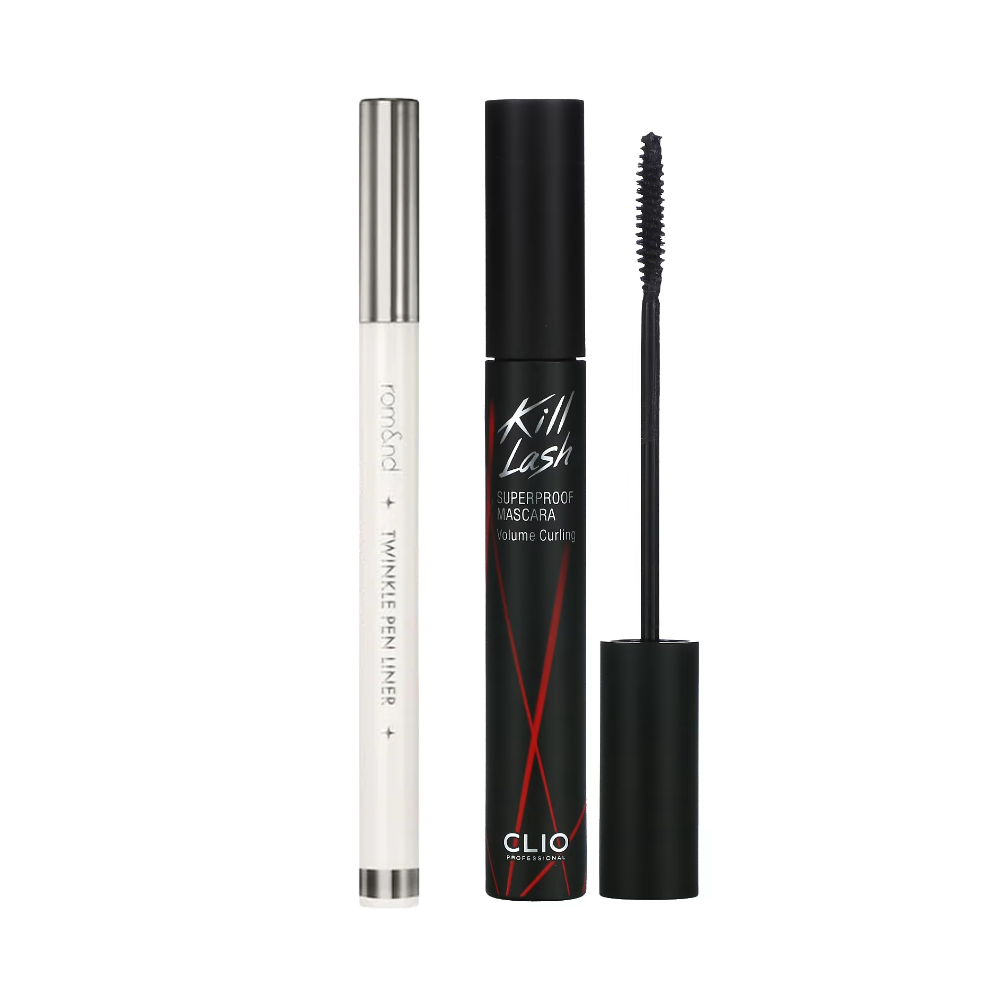 ROMAND Twinkle Pen Liner 04 Midnight Ash + CLIO Kill Lash Superproof Mascara Volume Curling