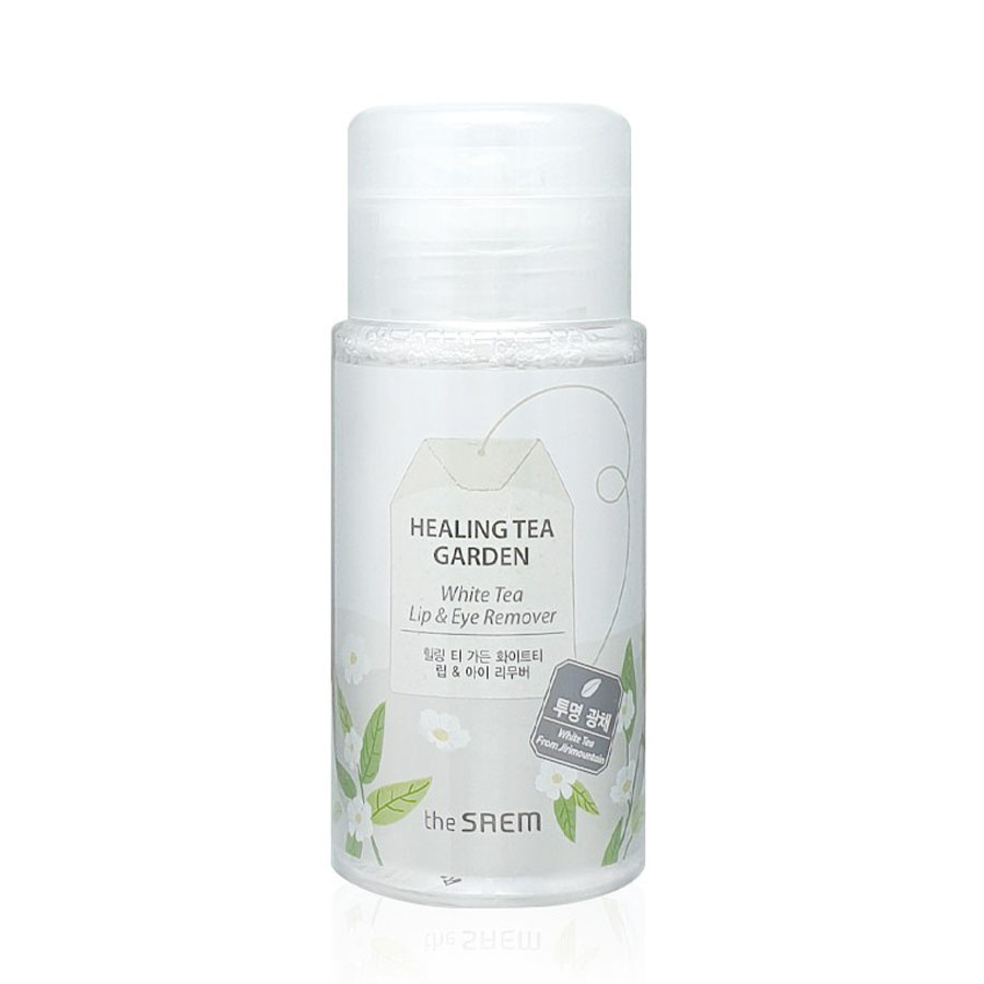 Der Saem Healing Tea Garden White Tea Lip & Eyes Remover entfernt schweres und hartnäckiges Make-up auf sanfte Weise und hat gleichzeitig eine aufhellende Wirkung. Hilft, die Haut mit Feuchtigkeit zu versorgen.
