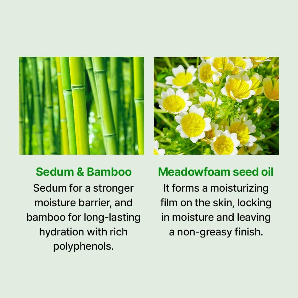 Bambusa Textilis Stem Extract, Glycerin, Propanediol, Hydrogenated Polydecene, 1,2-Hexanediol, Water, Vinyldimethicone, Cetearyl Alcohol, Butylene Glycol, Polyglyceryl-2 Stearate, Glycereth-26, Sodium Polyacryloyldimethyl Taurate, Glyceryl Stearate, Stearyl Alcohol, Carbomer, Cetearyl Glucoside, Biosaccharide Gum-1, Tromethamine, Limnanthes Alba Seed Oil, Ethylhexylglycerin, Sedum Sarmentosum Extract, Trideceth-10, Hydroxyethylcellulose, Disodium EDTA, Pogostemon Cablin Leaf Oil, Melia Azadirachta Leaf Extract, Triticum Aestivum Seed Extract, Ammonium Polyacryloyldimethyl Taurate, Melia Azadirachta Flower Extract, Glucose, Hordeum Vulgare Sprout Extract, Hordeum Vulgare Extract.