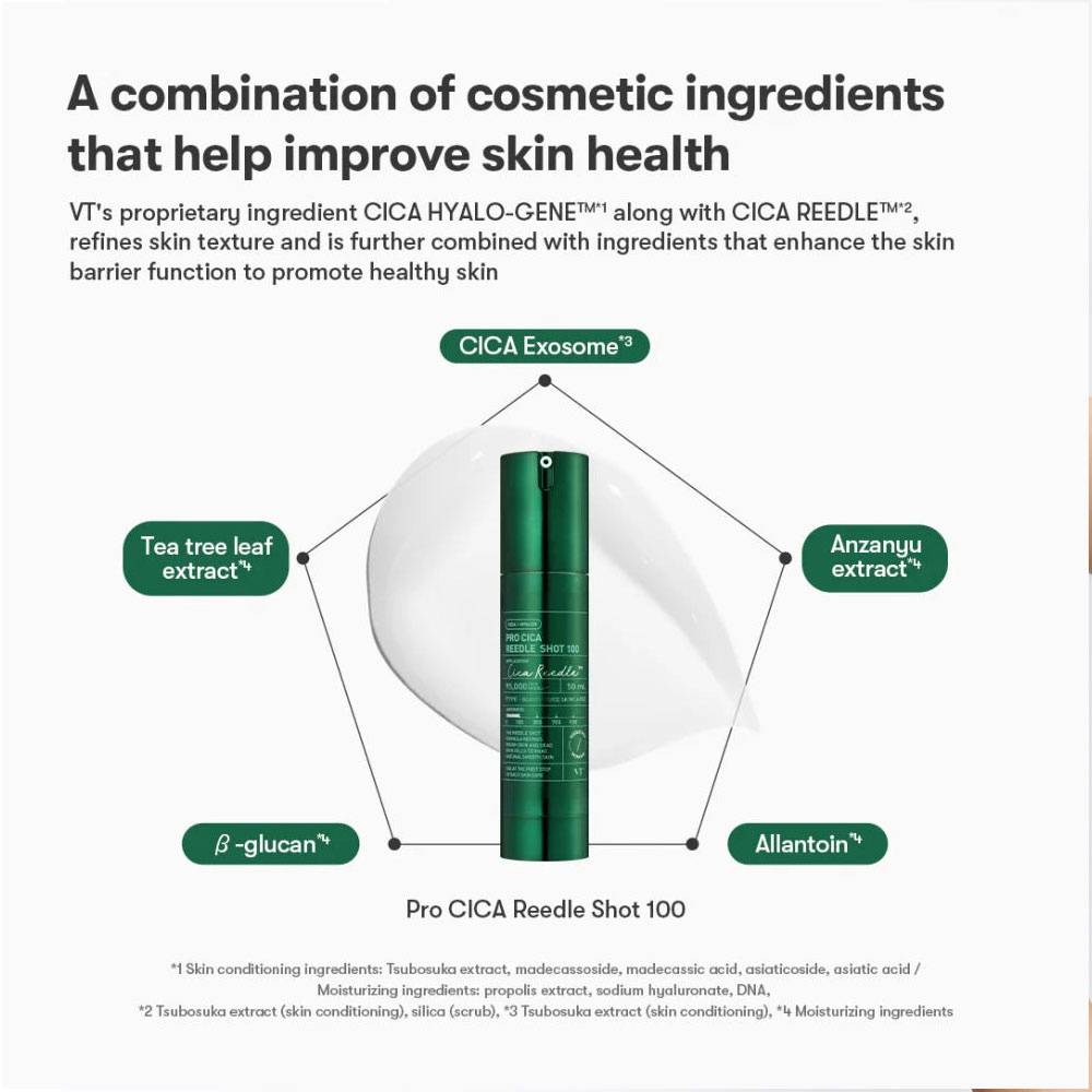 Beruhige und durchfeuchte die Haut mit dem VT CosmeticsPro Cica Reedle Shot 100 – ein leichtes Serum zur Linderung von Empfindlichkeiten und zur Stärkung der Hautfeuchtigkeitsbarriere. Mit Cica Reedle™, ultrafeinen Mikronadeln aus CICA, fördert es das tiefe Eindringen von Wirkstoffen für eine bessere Hautgesundheit und Hydratation.