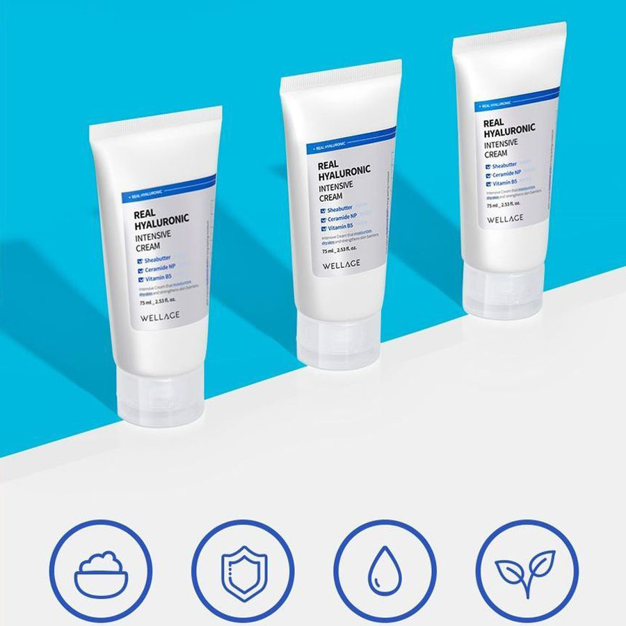 Die Wellage Real Hyaluronic Intensive Cream stärkt die Hautbarriere und versorgt sie mit reinen Inhaltsstoffen, die die Haut nähren und vor Austrocknung schützen. Sie bildet eine Schutzschicht auf der Haut und schützt sie vor äußeren Faktoren, die Irritationen verursachen können. Darüber hinaus ist sie auch ideal für andere trockene oder dehydrierte Stellen wie Ellbogen, Knie und Fersen. Geeignet für sehr trockene Haut.
